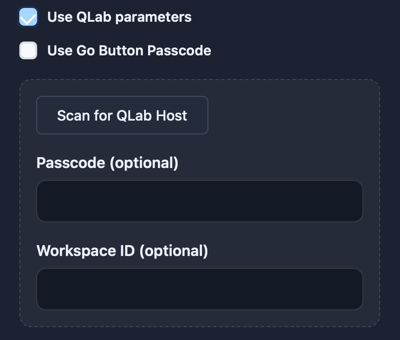 Then configure the optional settings for QLab or GoButton, if it is such a system.