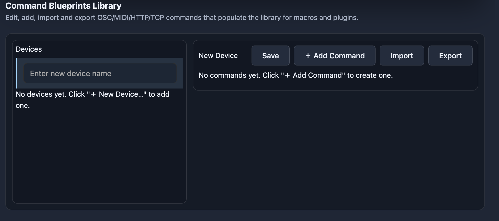 Commands can be exported and imported, allowing them to be shared between devices.